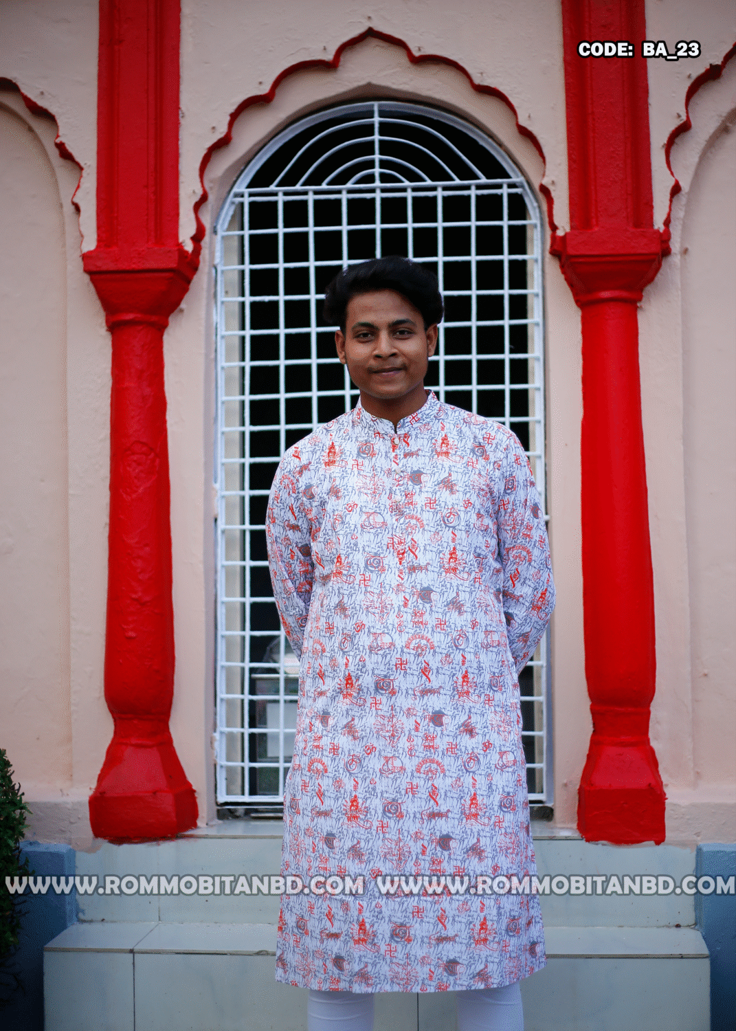 • ডিজাইনঃ সম্পূর্ন পাঞ্জাবি স্ক্রিন প্রিন্ট করা,যা দেখতে অত্যন্ত আকর্ষনীয় এবং মার্জিত।